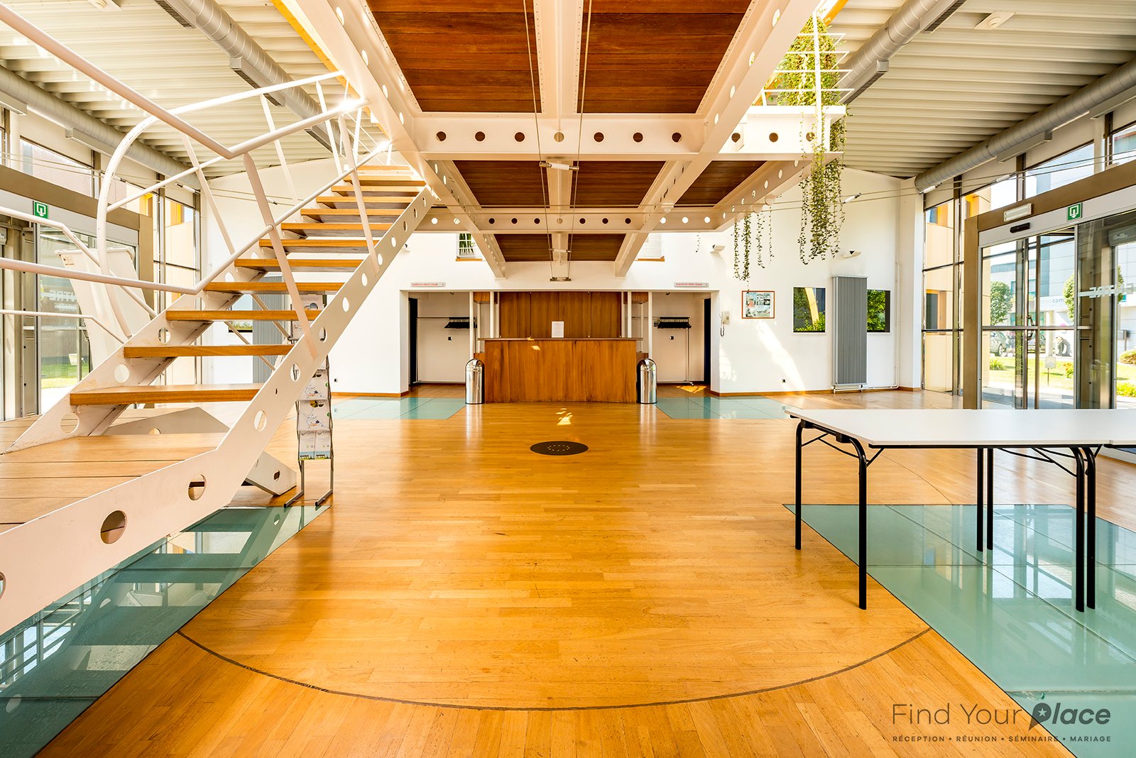 Lors de vos événements, le hall de réception est mis à votre disposition pour accueillir les participants et les prestations traiteur.