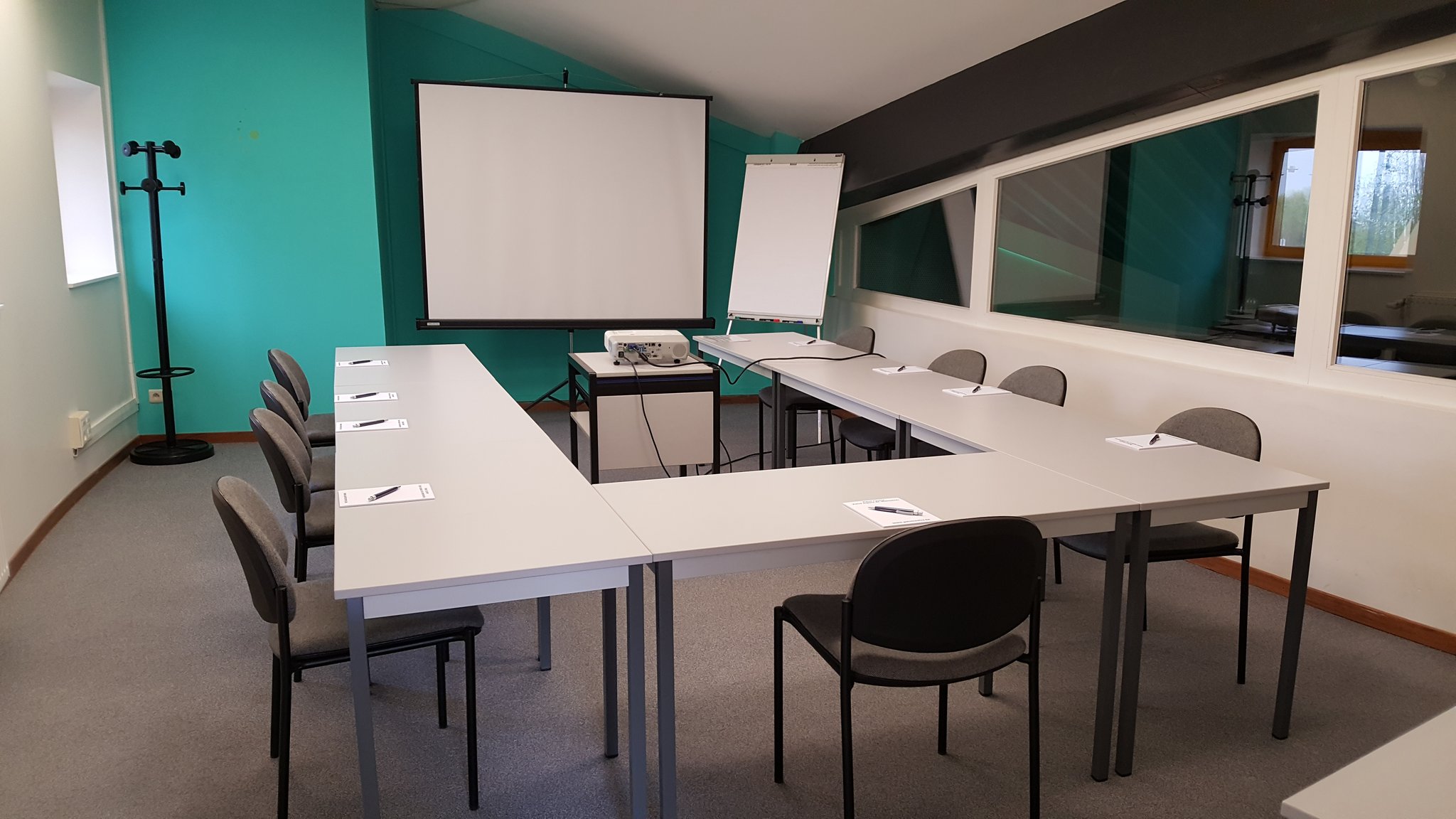 Projecteur, écran, tableau blanc (marqueurs et papier) et connexion wifi
